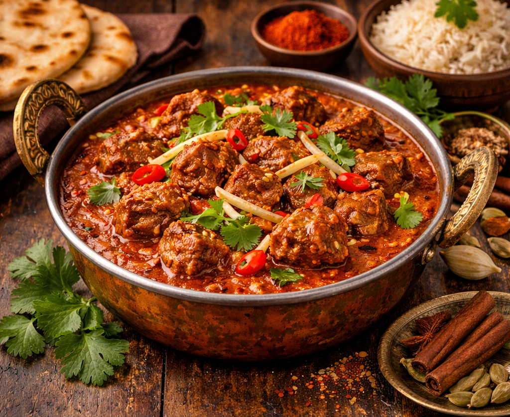 Tender pieces of beef cooked in herbs & spices in a special way.