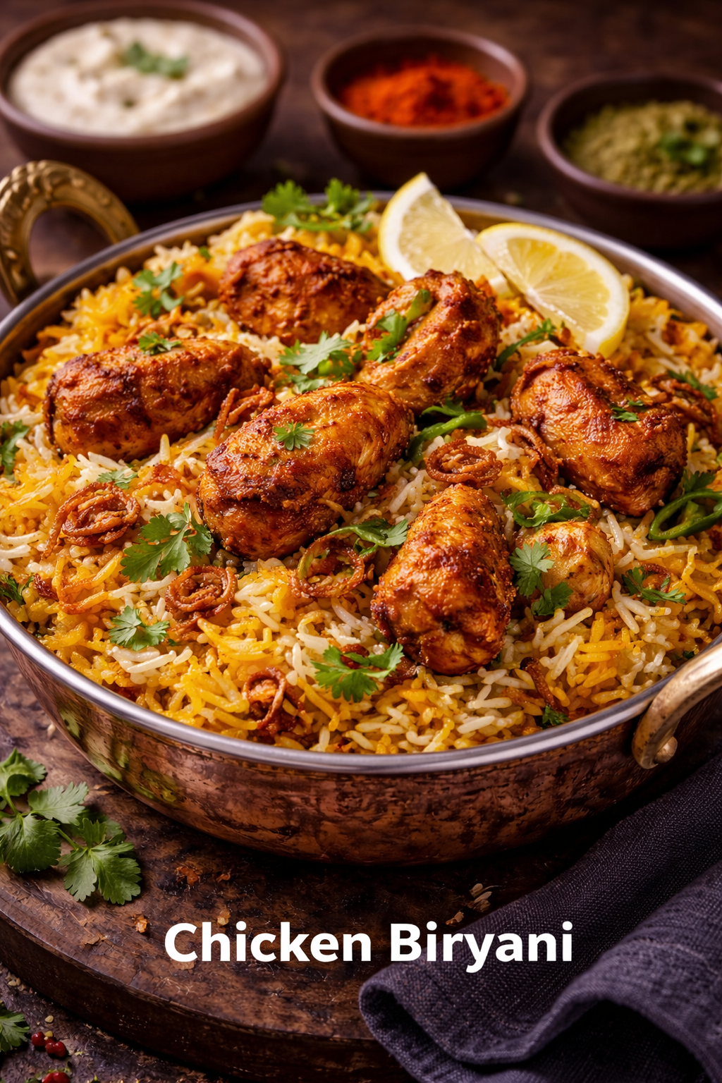Chicken cooked with spice, herb and yoghurt in basmati rice flavoured with saffron