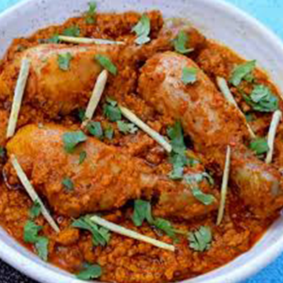 A chilli hot dry chicken with dominant flavours of fenugreek.