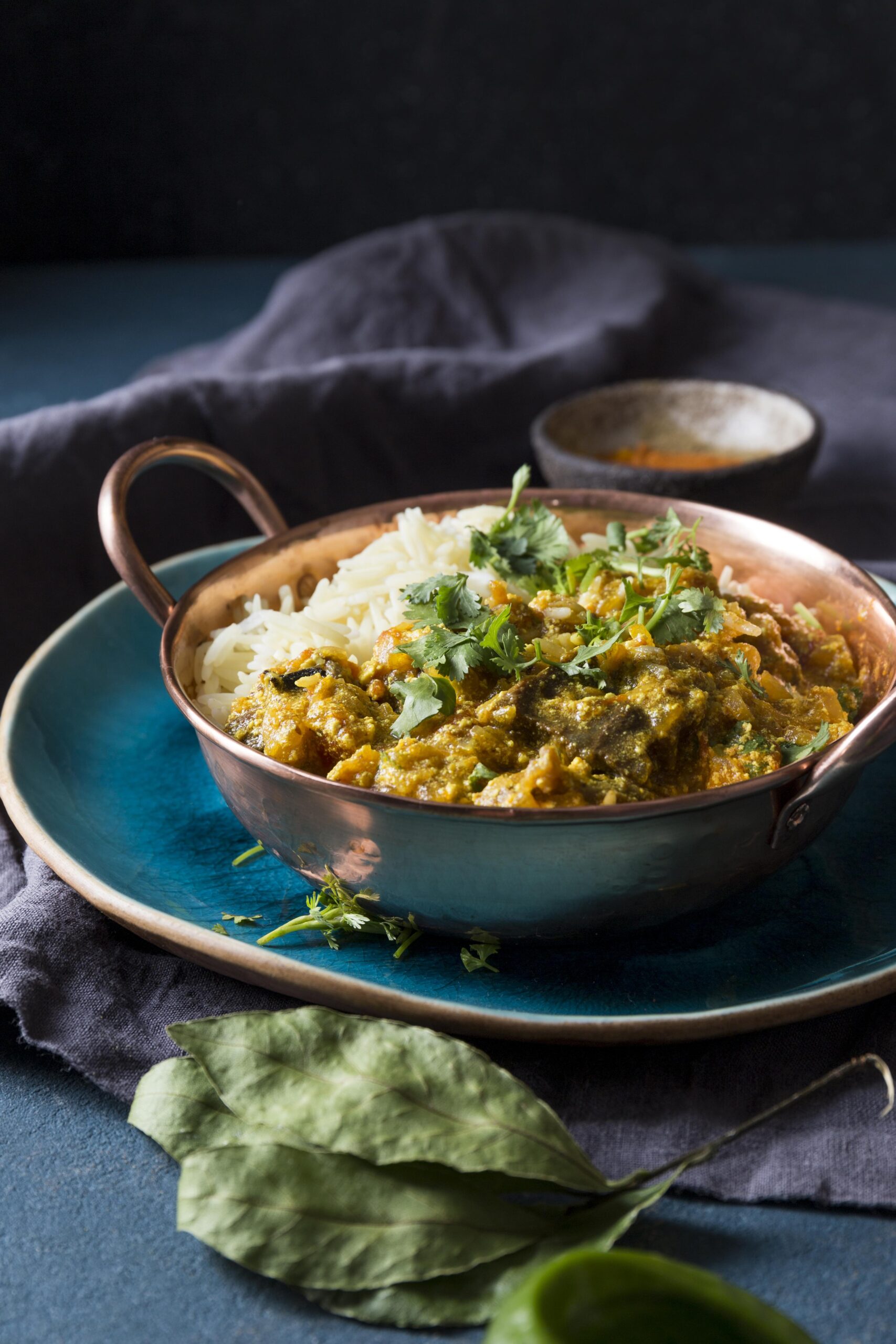 Chicken in a cream based gravy with fenugreek leaves.